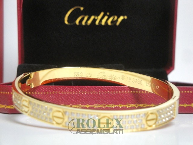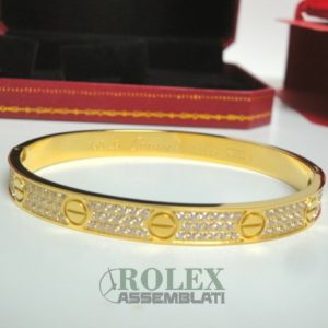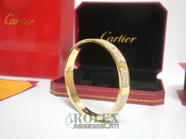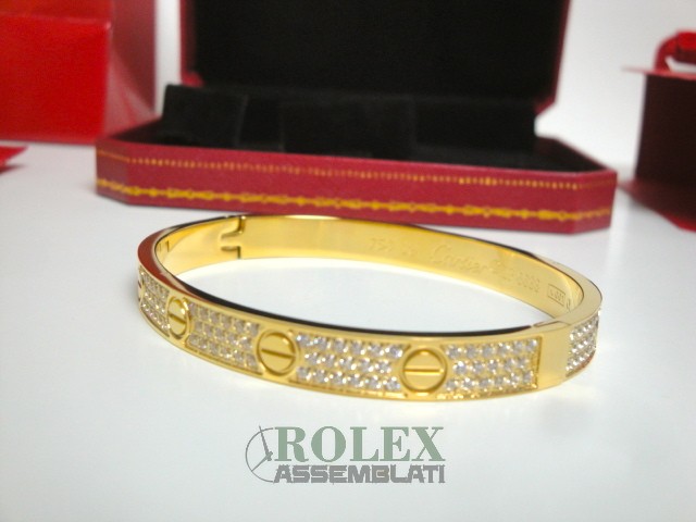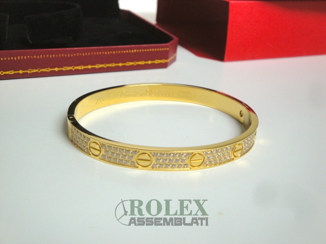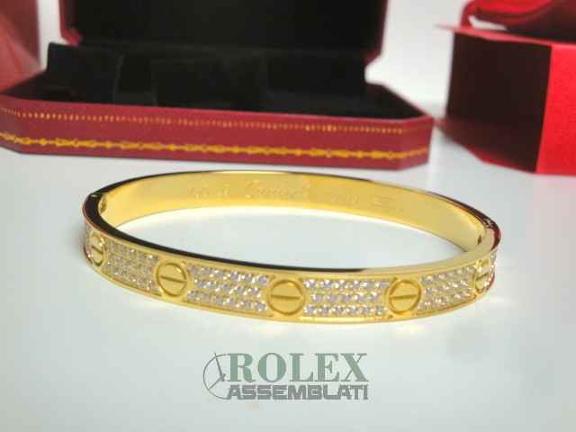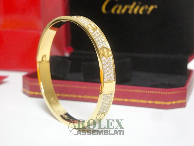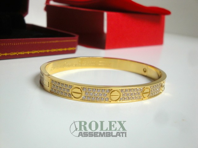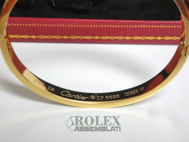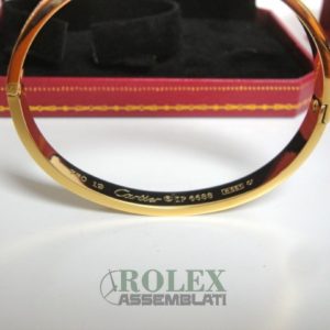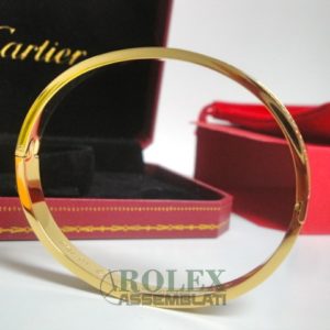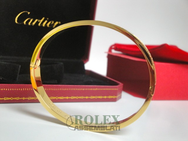 Cartier replica love bracciale imitazione perfetta latra piena di acciaio 904 AISI L con laminazione di oro vero 18kt spessore 800 micron top quality, non la solita replica asiatica, rolex-assemblati.it vende una replica artigianale realizzata con una lastra di acciaio fresato dal pieno e rivestimento di oro vero 18 kt 750 spessore 800micron