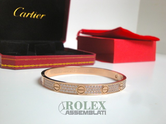 Cartier replica love bracciale oro rosa pavè diamond gioiello assemblato