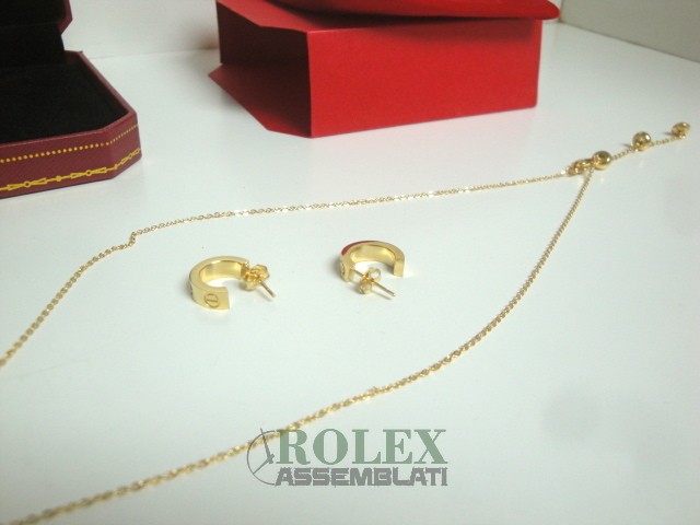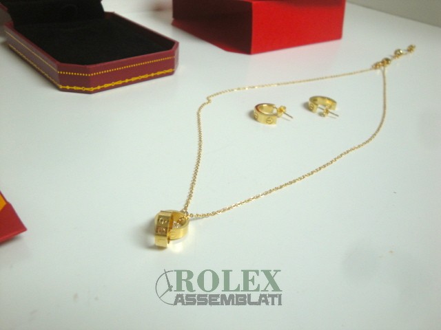 Cartier replica love collier completo orecchini oro giallo gioiello assemblato