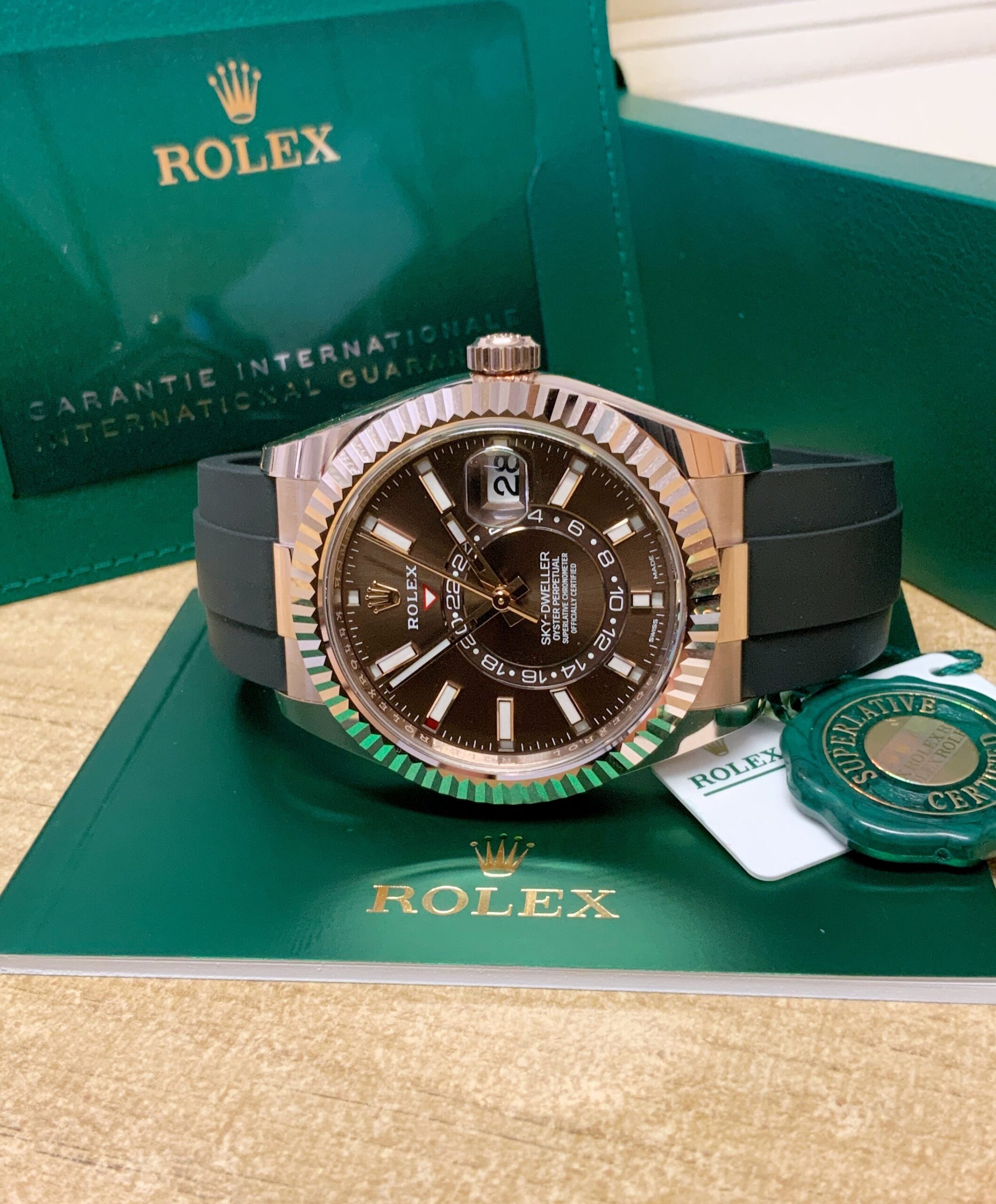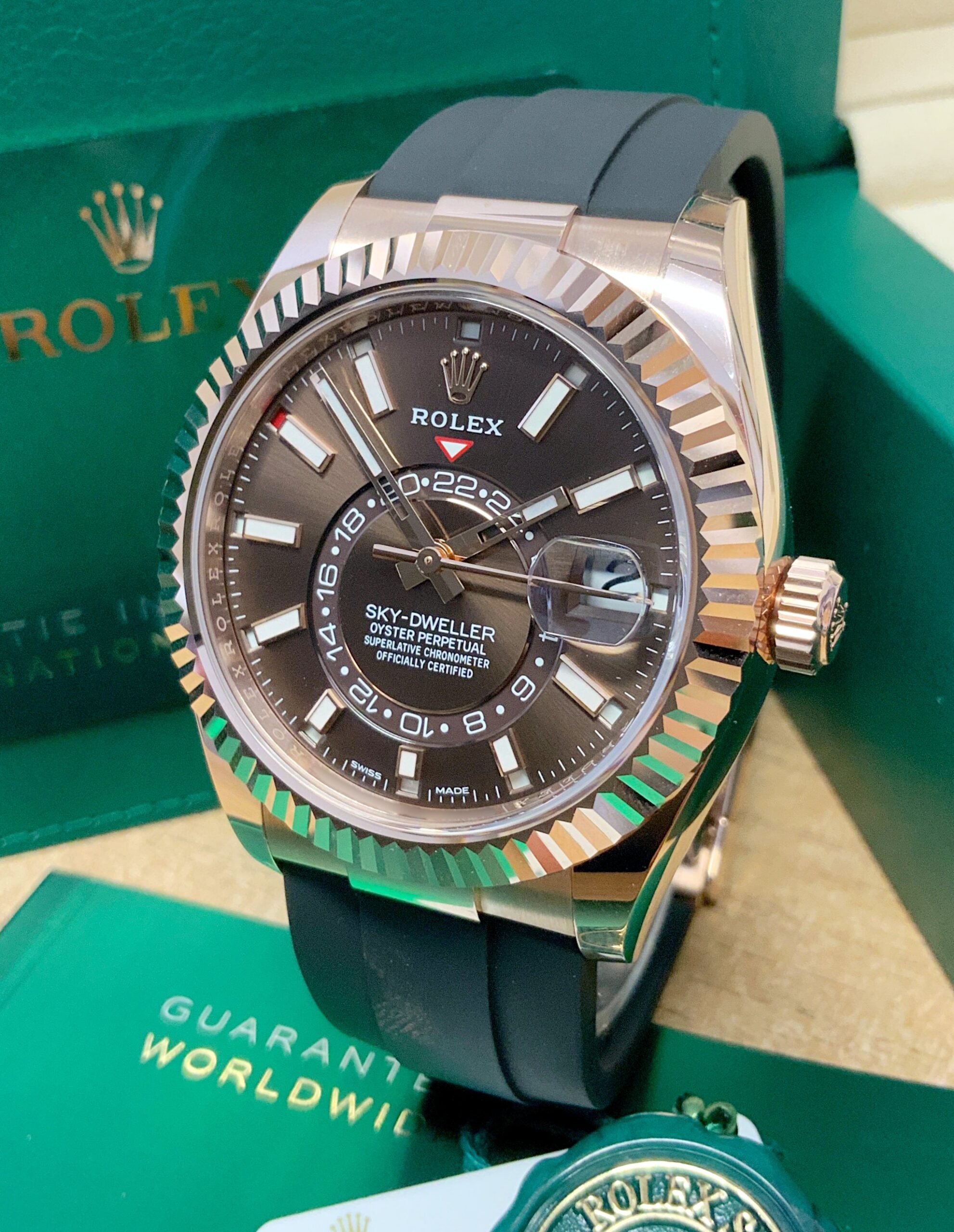 Rolex replica assemblato Sky-Dweller 326235 Rose Gold Oysterflex