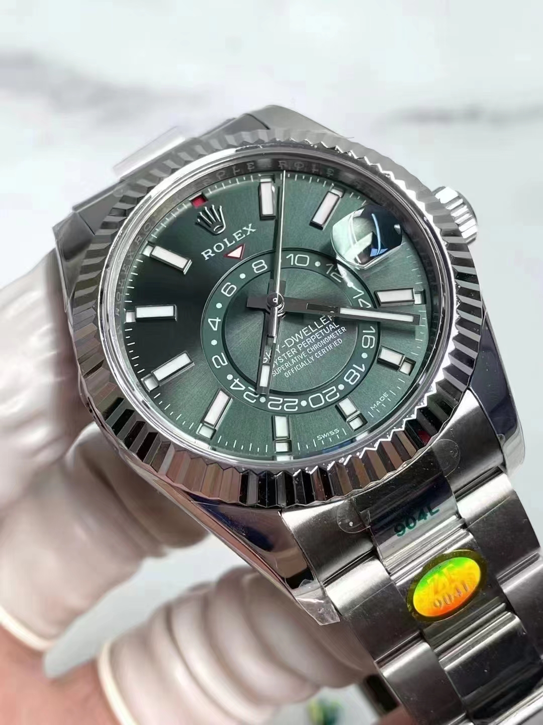 - Bracciale in acciaio 904 AISI L come in originale Rolex replica sky-dweller