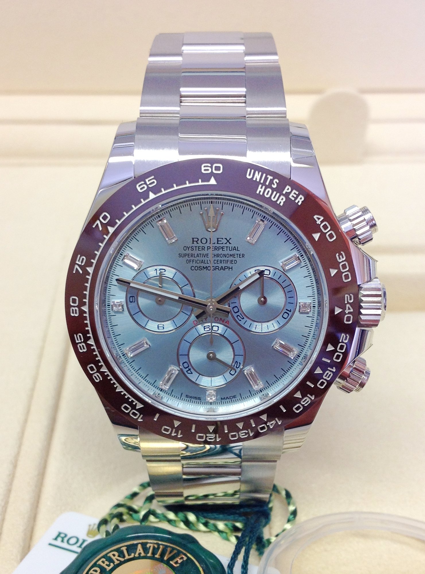 Rolex replica Daytona 116506 Platinum Ice Baguette Blue Dial orologio assemblato