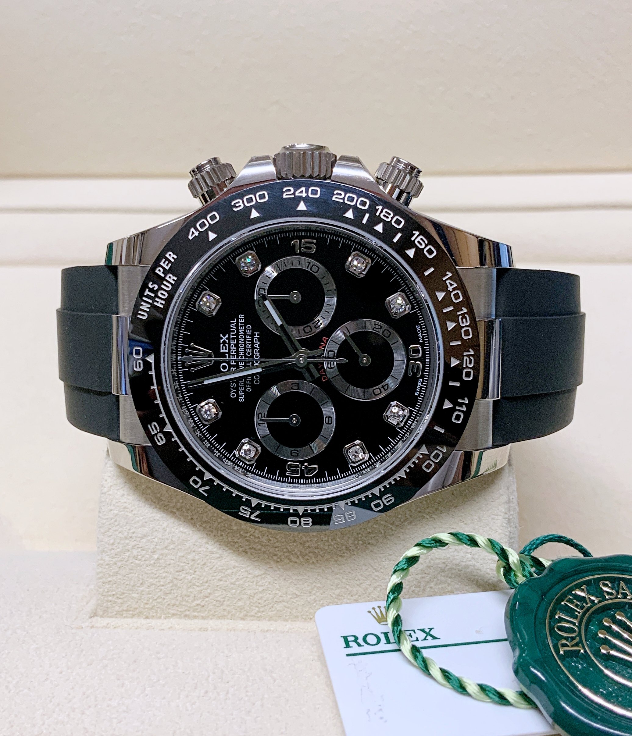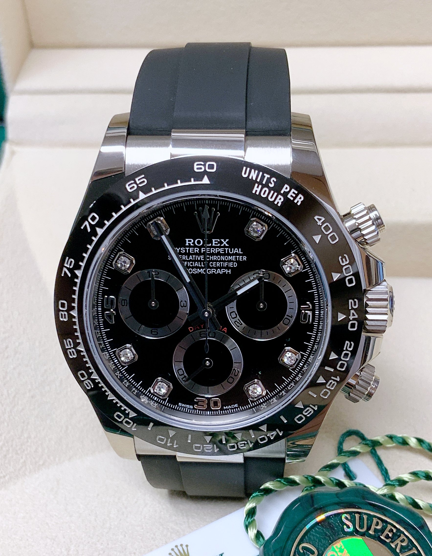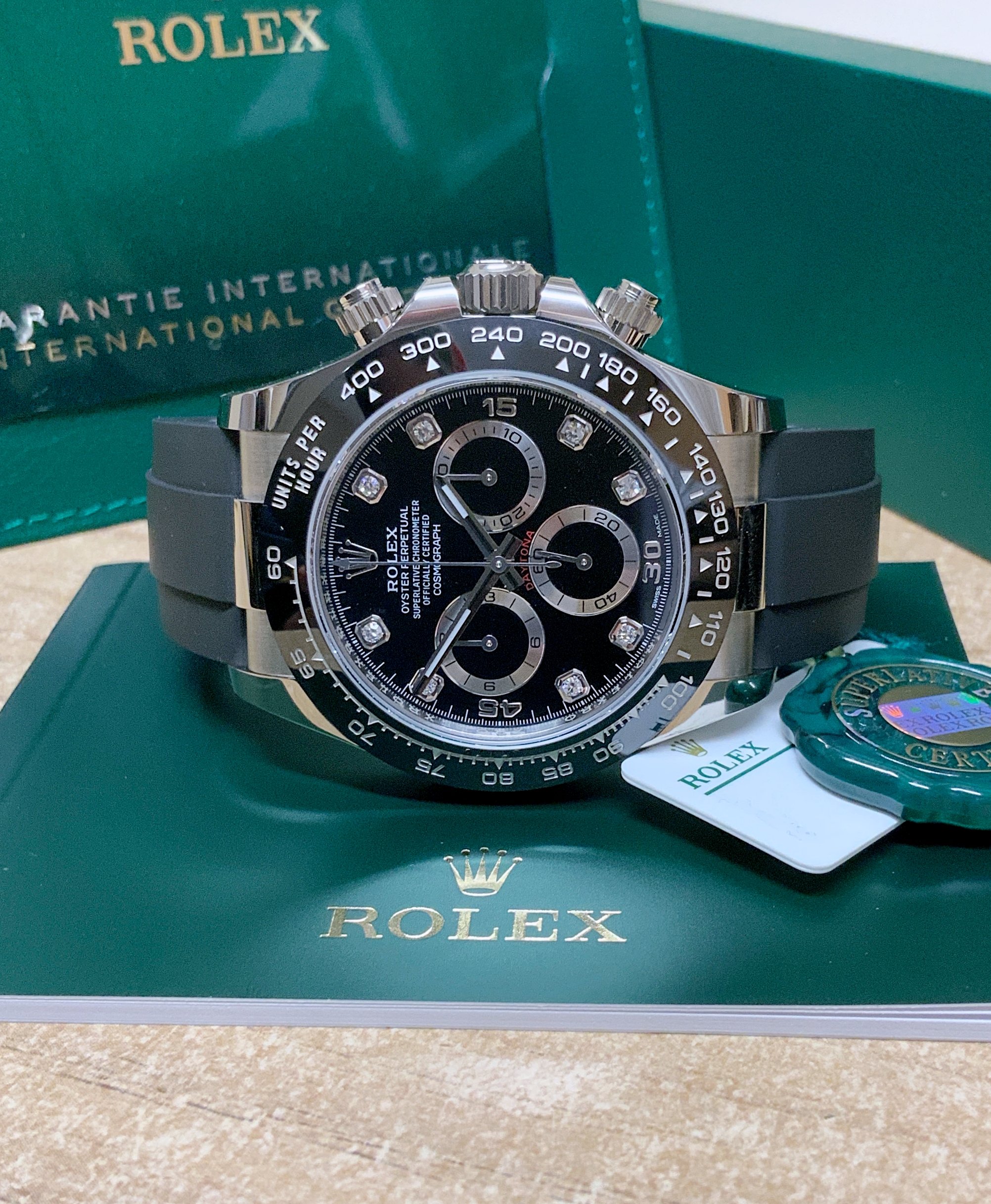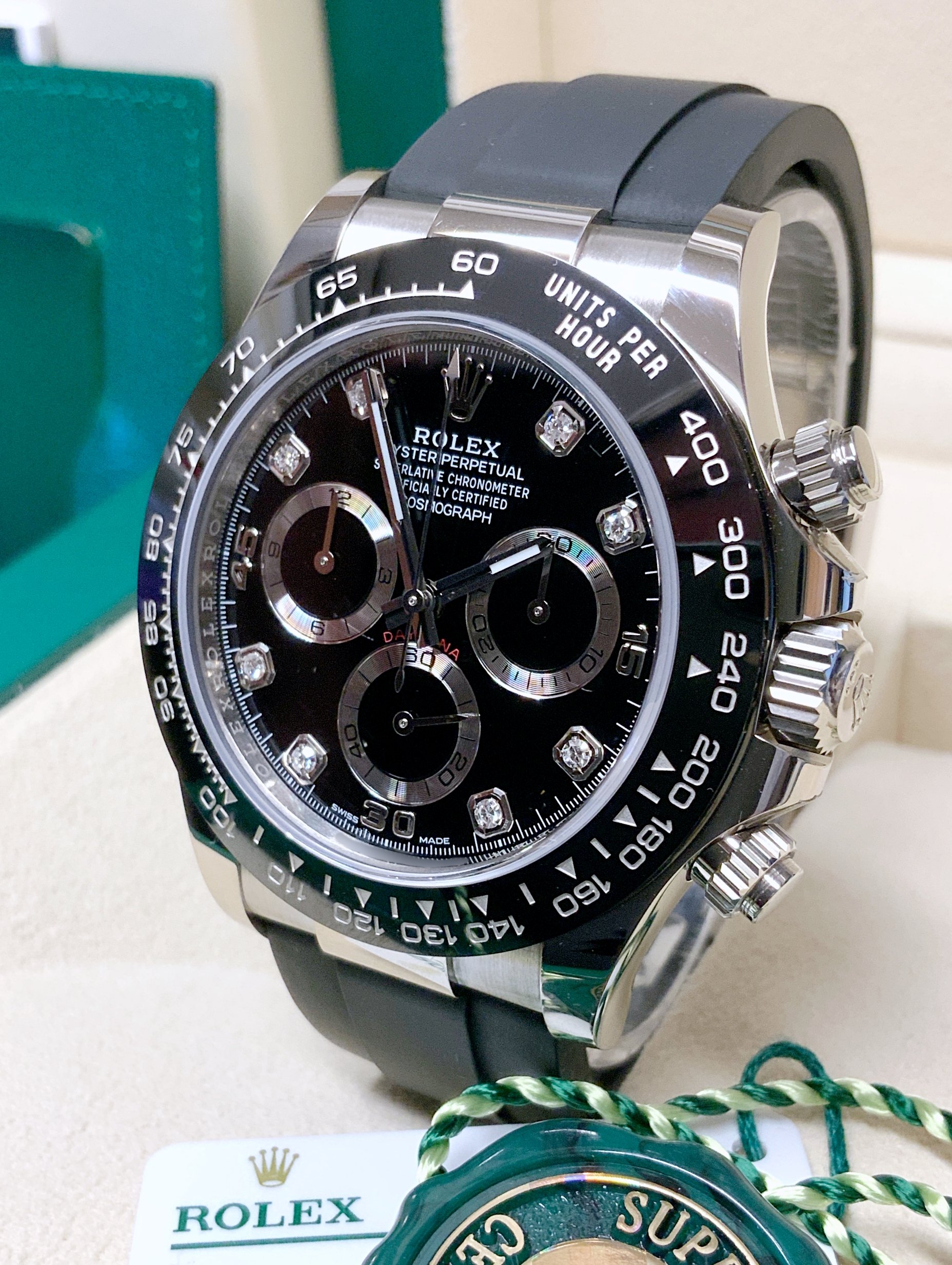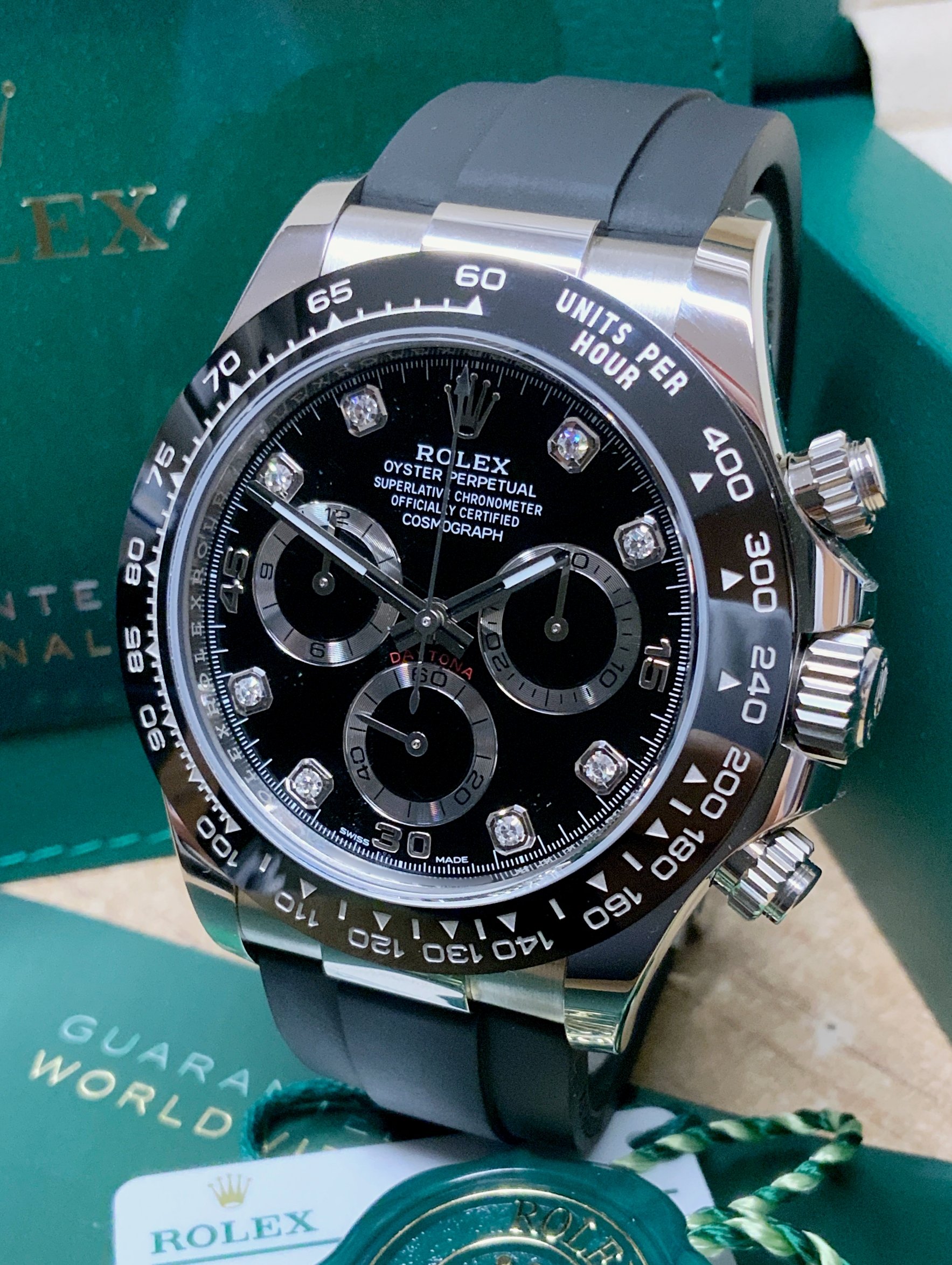 Rolex replica Daytona oysterflex 116519LN white gold black diamond dial orologio assemblato